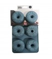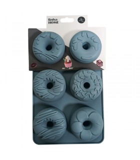 Molde de silicona con 6 cavidades para preparar donas caseras, muffins o mini bundts con diseños variados y decorativos.